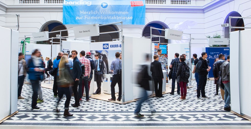 Hierzu stellt die bonding e.V. verschiedene Veranstaltungen, wie die Firmenkontaktmesse am 27.10 an der Technischen Universität in Berlin, auf die Beine und zählt unter anderem zum größten Anbieter von Firmenkontaktmessen.